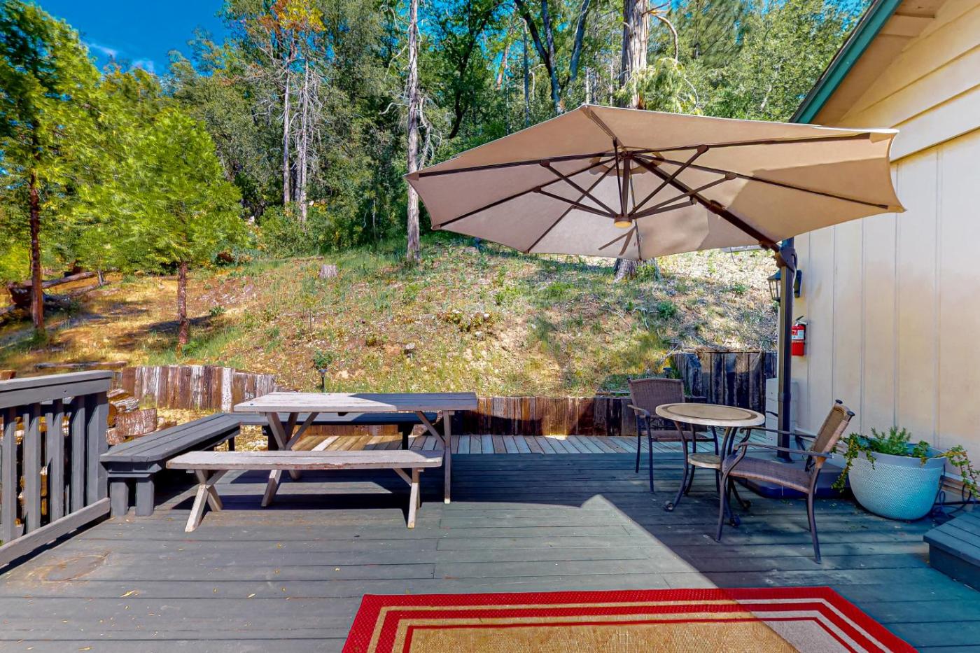 Set in Bass Lake in the California region, Casa de la MontaƱa features a balcony. The holiday home is 28 km from Yosemite South Entrance. The property has a restaurant with an outdoor dining area.