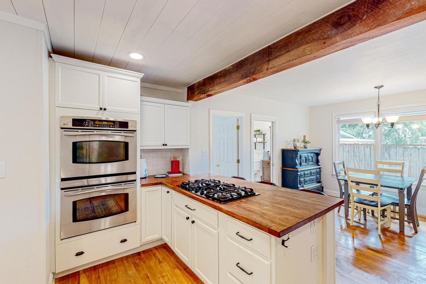 Two-Bedroom House. Featuring a private entrance, this air-conditioned holiday home is comprised of a kitchen, 2 bedrooms and 1 bathroom with a bath and a hairdryer. The well-equipped kitchen features a stovetop, a refrigerator, a dishwasher and kitchenware. The holiday home offers a flat-screen TV with streaming services, a washing machine, a tea and coffee maker, a seating area as well as mountain views. The unit offers 2 beds.