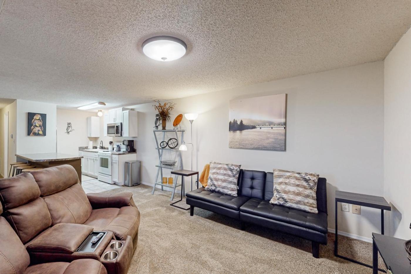 One-Bedroom Apartment. Boasting a private entrance, this air-conditioned apartment comes with 1 living room, 1 separate bedroom and 1 bathroom with a bath and a hairdryer. Guests will find a stovetop, a refrigerator, kitchenware and an oven in the well-equipped kitchen. The apartment also includes a barbecue. Featuring an outdoor dining area, this apartment also features a tea and coffee maker, a seating area and a flat-screen TV with streaming services. The unit has 2 beds.