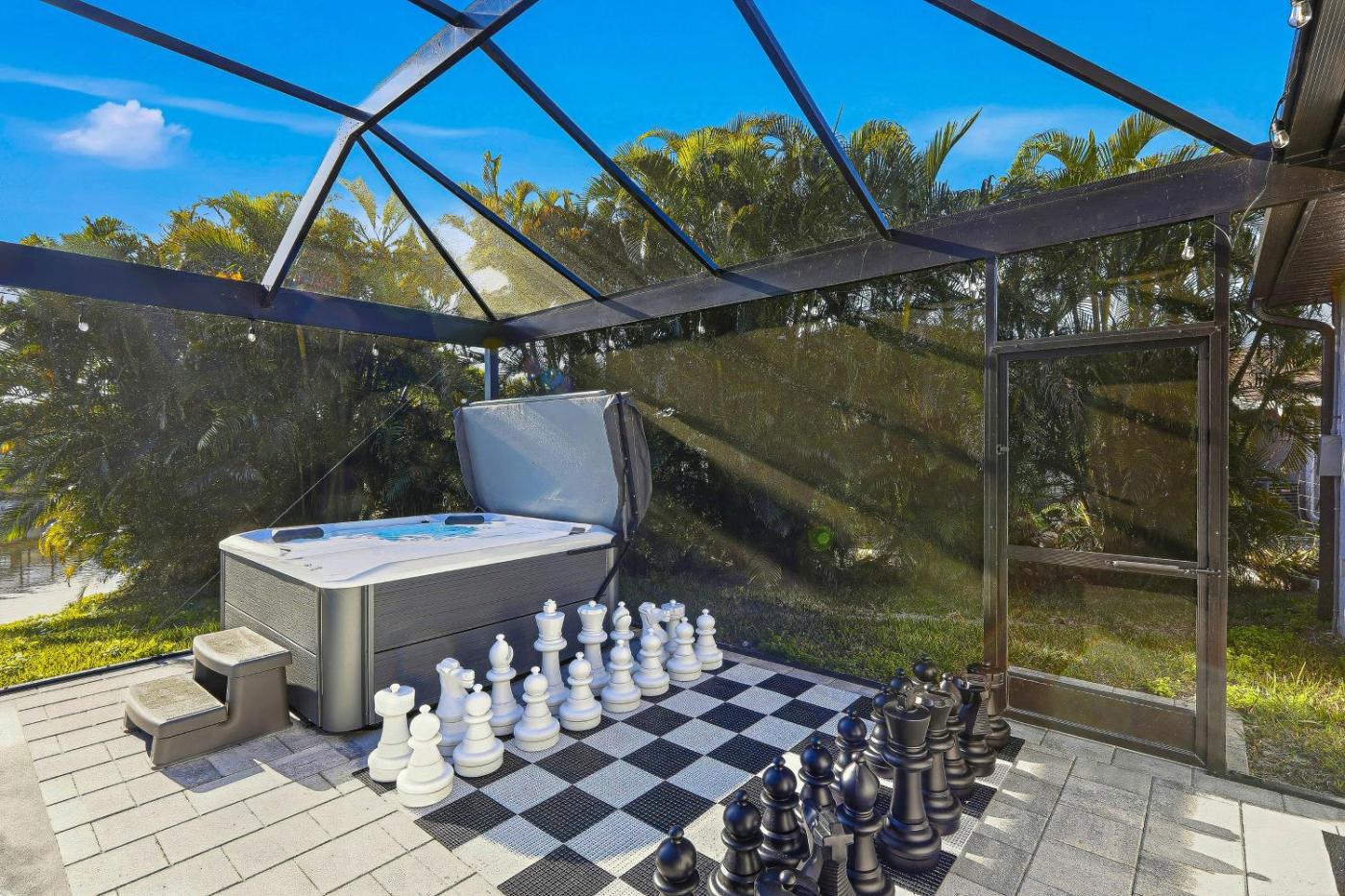 Boasting air-conditioned accommodation with a private pool, The Cape Estate is situated in Cape Coral. Guests can benefit from a patio and an outdoor fireplace. Outdoor seating is also available at the holiday home.