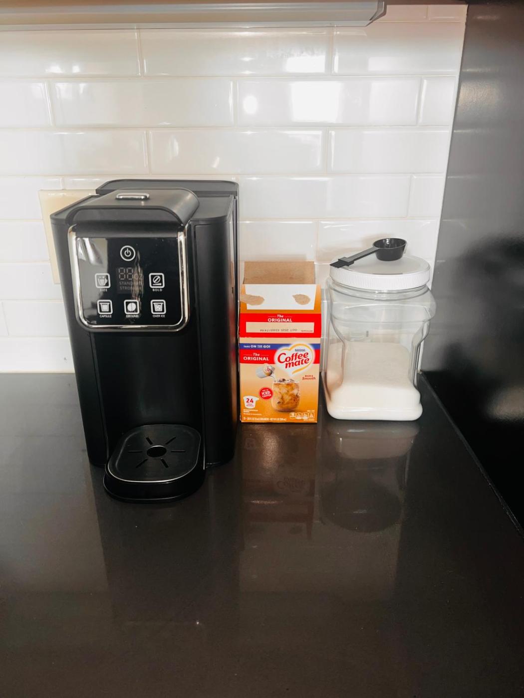 Shared stationery such as printed menus, magazines, pens, and paper removed