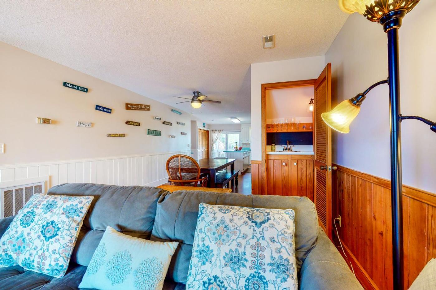 Featuring air-conditioned accommodation with a patio, Bewitched is located in Edisto Beach. The holiday home has access to a restaurant. The property provides a childrens playground and outdoor furniture.