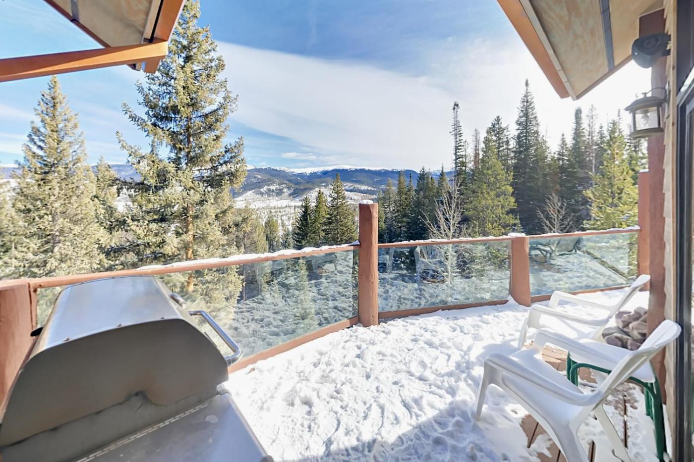 The spacious holiday home has 5 bedrooms, 4 bathrooms, bed linen, towels, a TV with streaming services, a dining area, a fully equipped kitchen, and a patio with mountain views. There is also a seating area and a fireplace.
