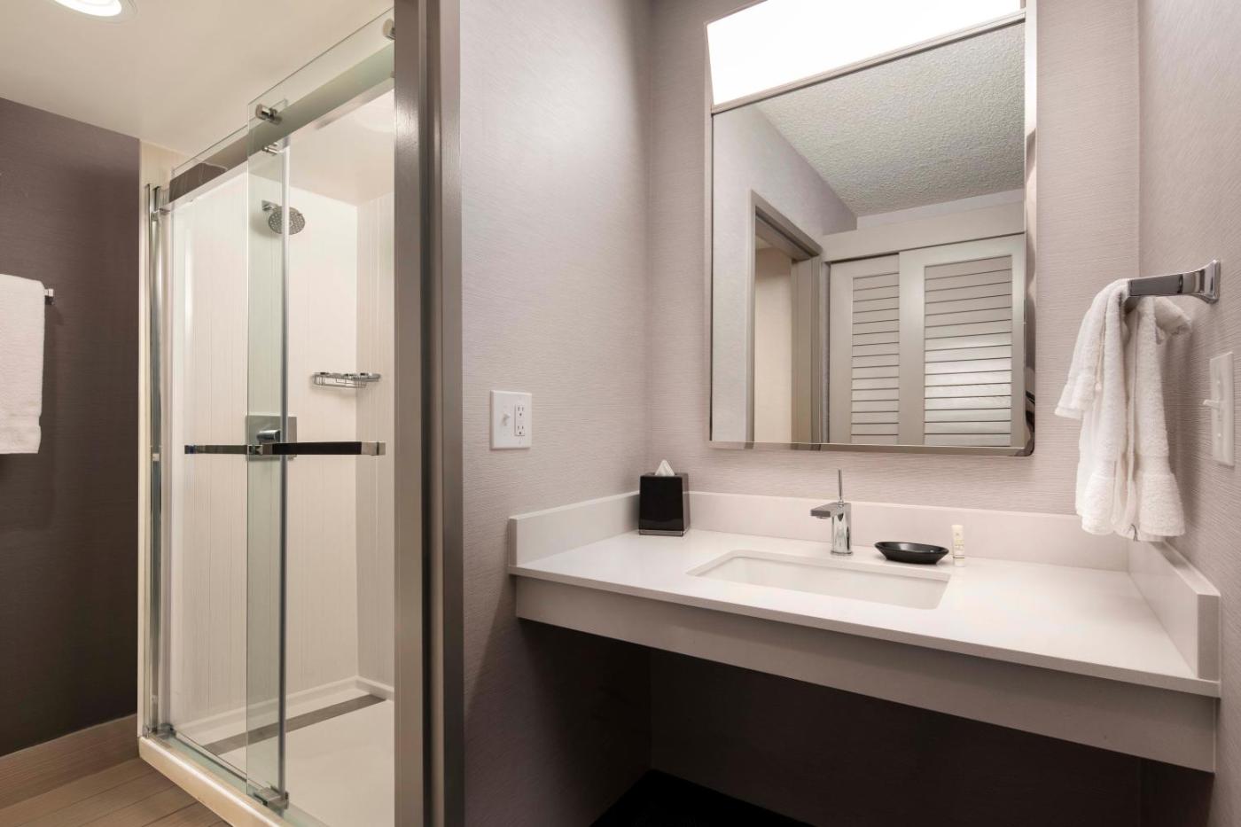 King Suite with Bathtub - Mobility and Hearing Accessible. The unit offers 1 bed. ;
