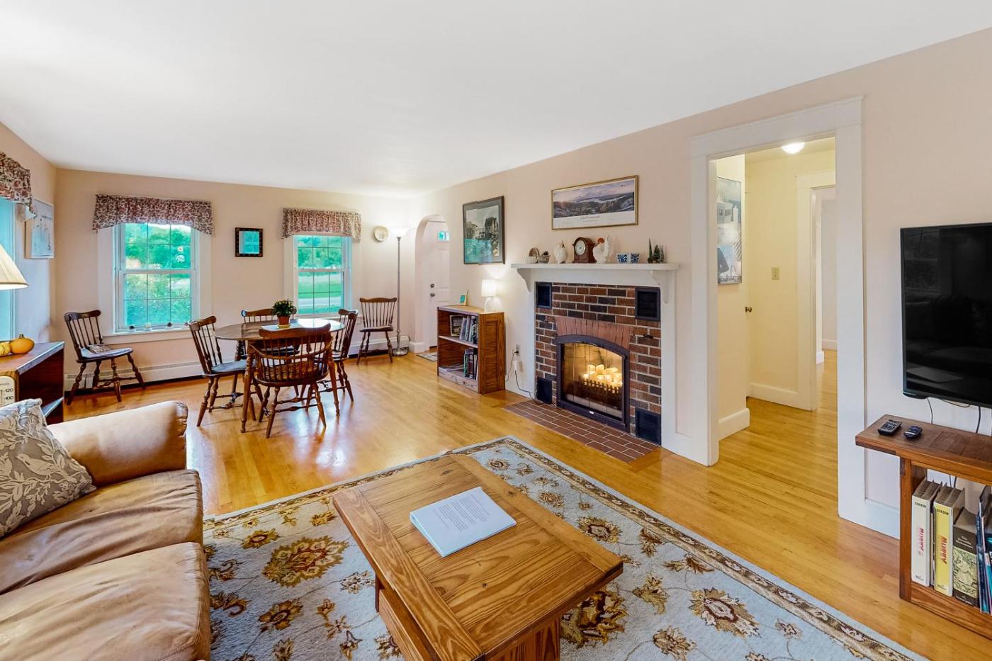 Cape Me Away isin Gilford. The property has a restaurant with an outdoor dining area.