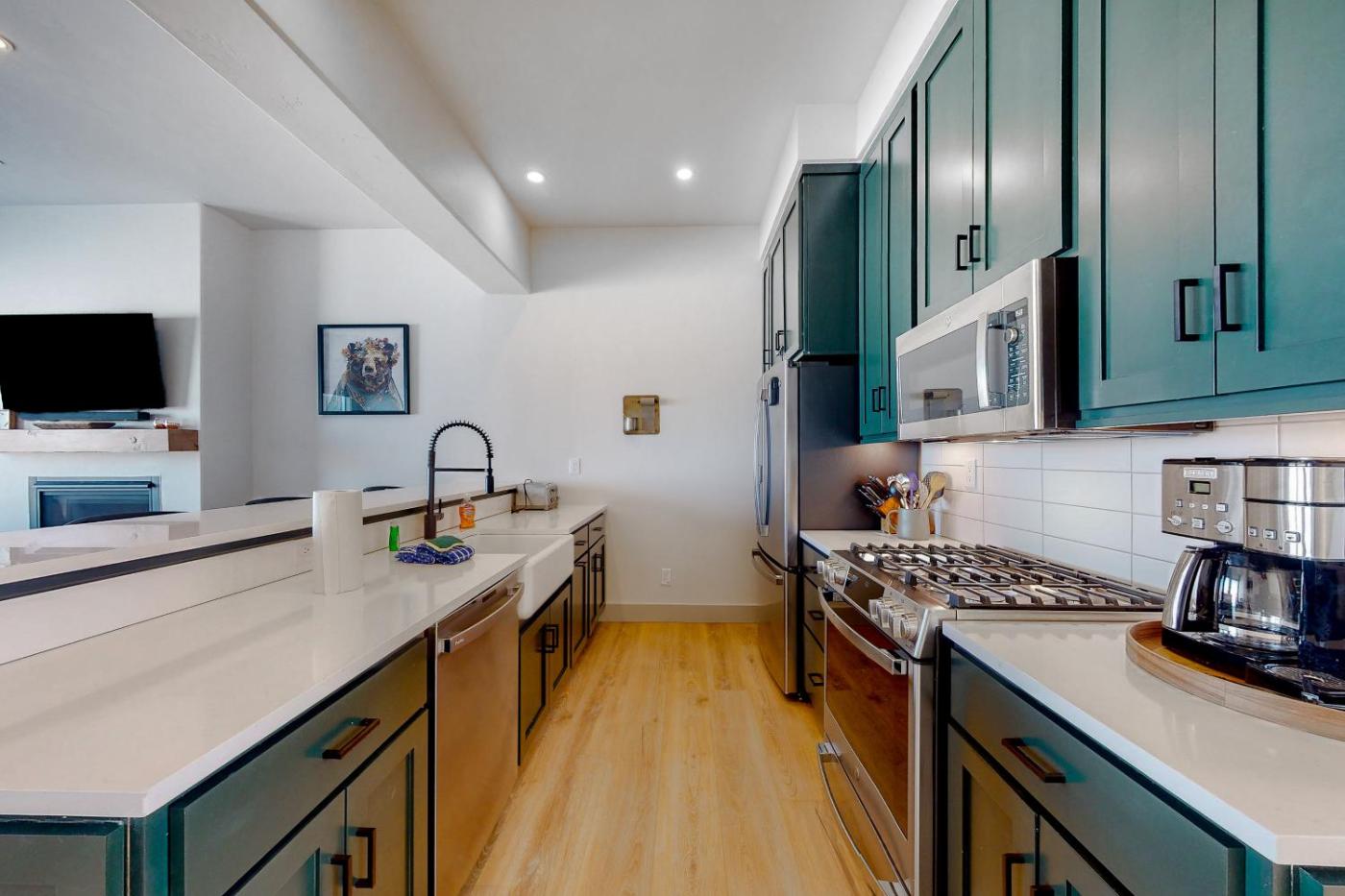 Three-Bedroom House. The fireplace is the standout feature of this holiday home. Boasting 3 bedrooms and 3 bathrooms, this spacious holiday home has a living room and terraceyou can relax. In the well-fitted kitchen, guests will find a stovetop, a refrigerator, a dishwasher and kitchenware. The holiday home features a flat-screen TV with cable channels, a washing machine, a private entrance, a tea and coffee maker as well as mountain views. The unit offers 7 beds.
