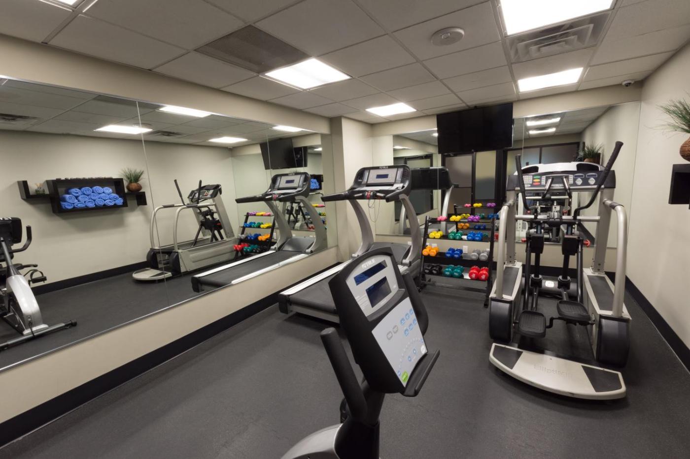 The fitness centre at The Carriage House offers cardio equipment and hand weights. The hotel also offers a hot tub.