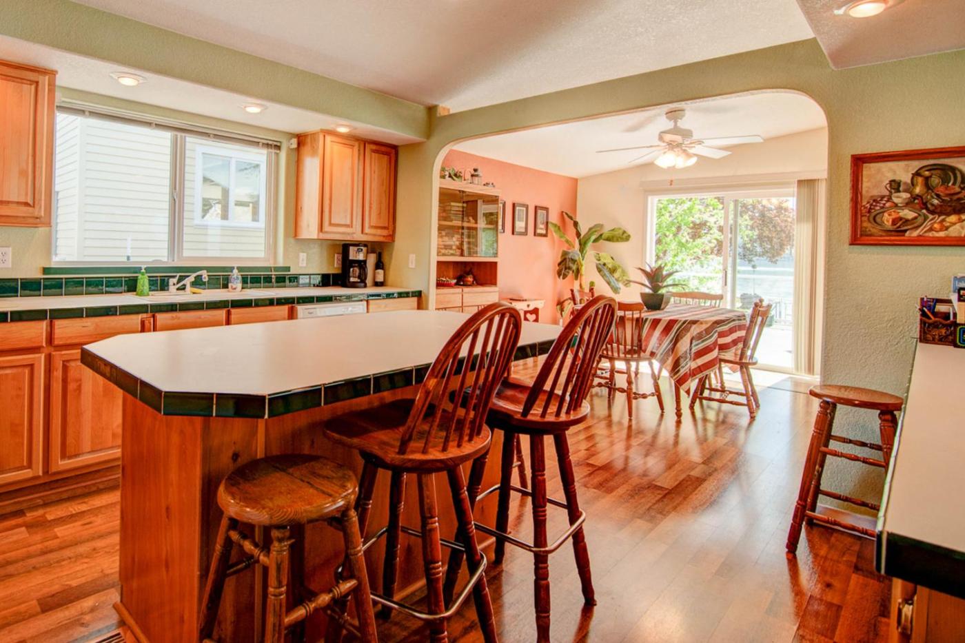 Three-Bedroom House. Featuring a private entrance, this holiday home also consists of 3 bedrooms, a seating area and 2 bathrooms with a bath and a hairdryer. Guests will find a stovetop, a refrigerator, a dishwasher and kitchenware in the fully equipped kitchen. The holiday home also offers a barbecue. The holiday home provides a TV with streaming services, a washing machine, a tea and coffee maker, a dining area as well as lake views. The unit offers 5 beds.