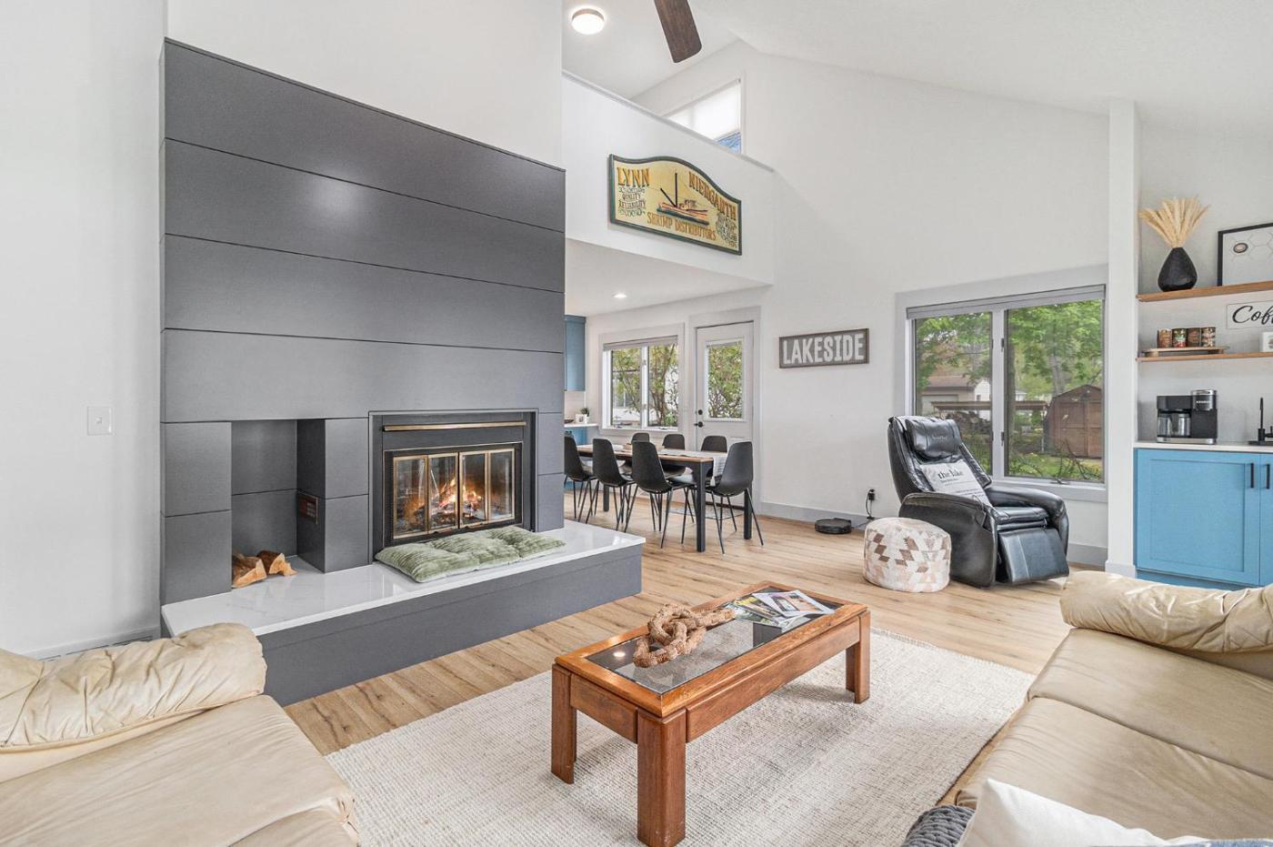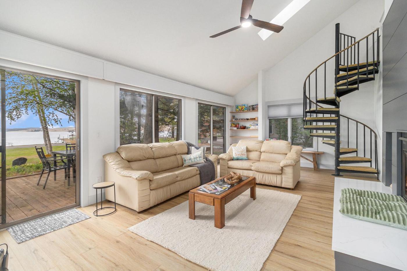 The spacious holiday home features 5 bedrooms, 4 bathrooms, bed linen, towels, a TV, a fully equipped kitchen, and a patio with lake views. The accommodation offers a fireplace.