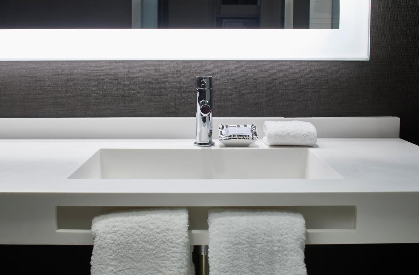 All guest rooms at the hotel are thoughtfully designed to maximize openness and minimize clutter. Rooms are also equipped with a seating area, a flat-screen TV with cable channels, an open closet, and sleek desk.