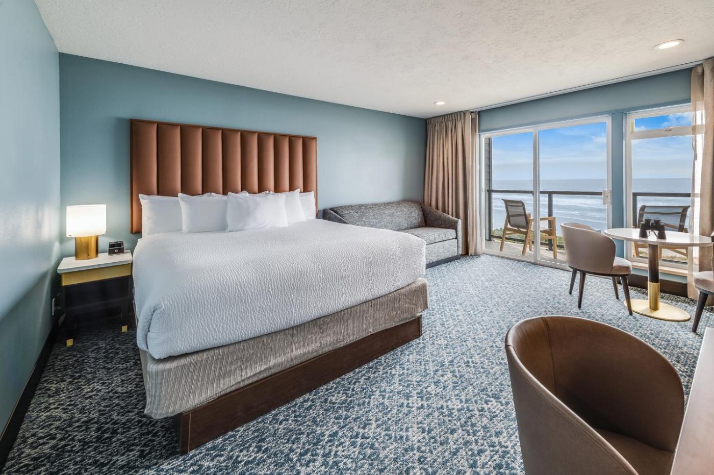 Premiere Accessible King with Sleeper Sofa (Pet Friendly). The fireplace is the standout feature of this studio. Featuring free toiletries and bathrobes, this studio includes a private bathroom with a walk-in shower and a hairdryer. The kitchenette features a refrigerator, kitchenware and a microwave. The air-conditioned studio features a flat-screen TV with streaming services, a private entrance, a tea and coffee maker, a seating area as well as sea views. The unit has 2 beds. ;