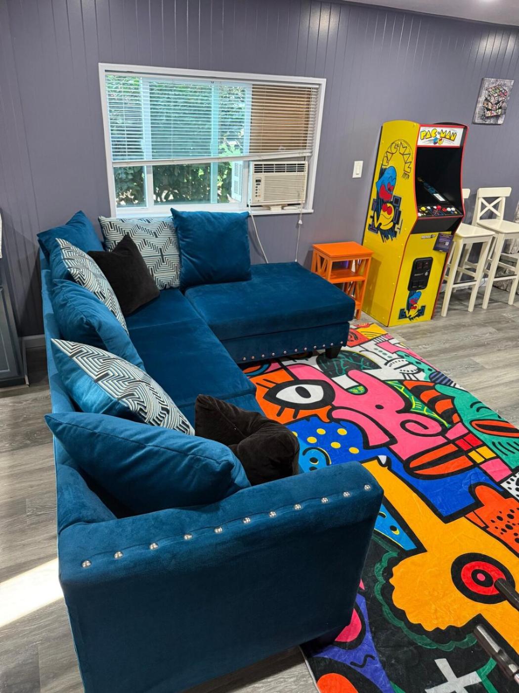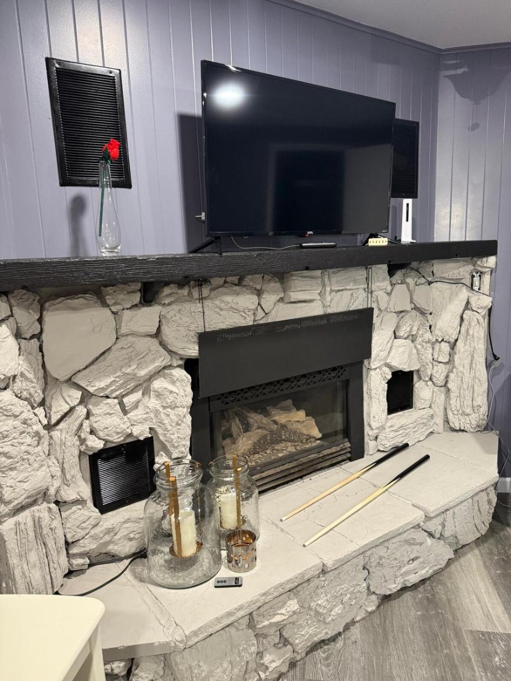 Two-Bedroom Apartment. This apartment features a fireplace. The well-equipped kitchen has a stovetop, a refrigerator, kitchenware and a microwave. The air-conditioned apartment offers a flat-screen TV, a private entrance, a dining area, video games as well as garden views. The unit has 2 beds.