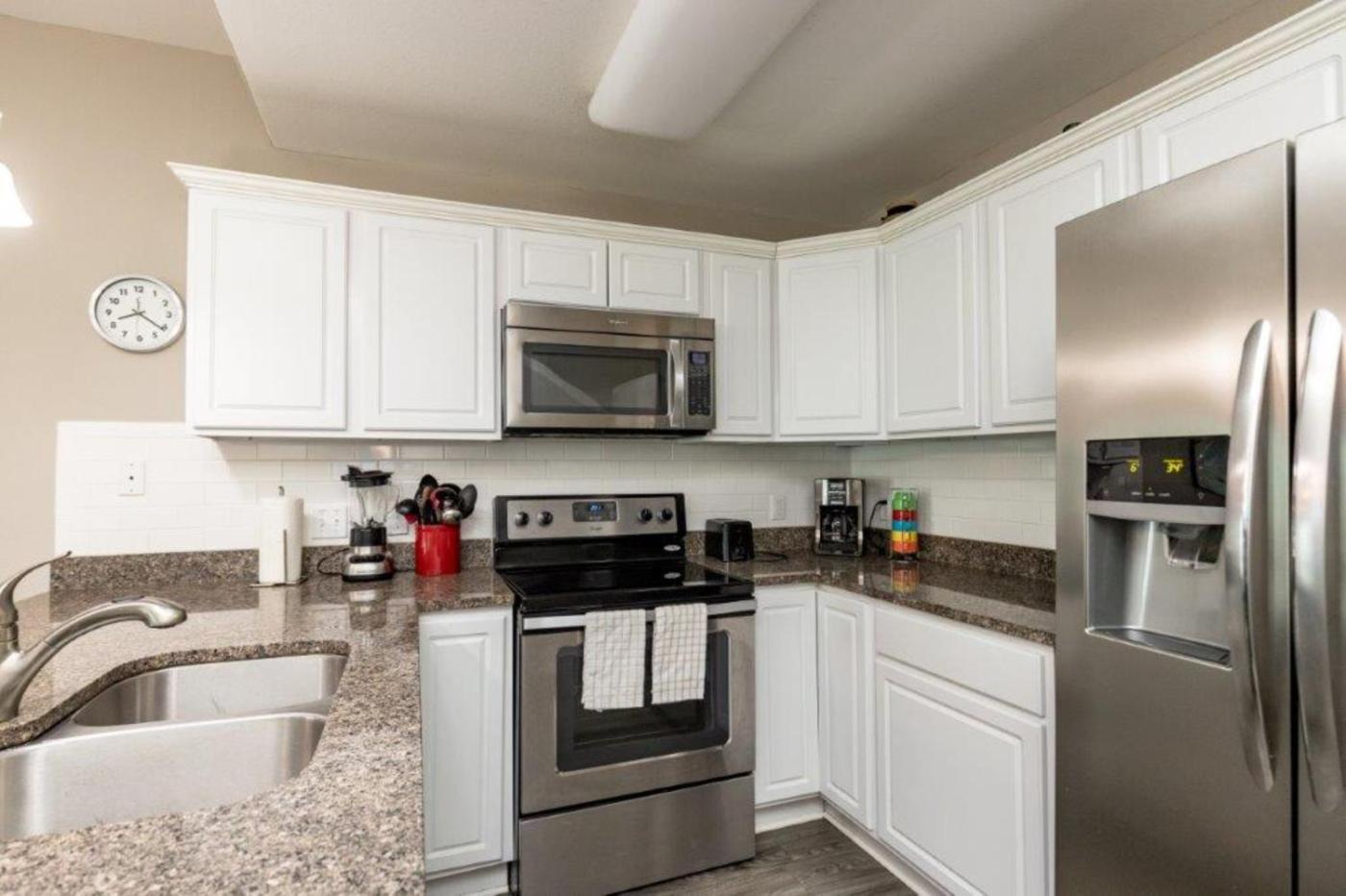 Three-Bedroom Townhouse. Featuring a private entrance, this spacious holiday home also is comprised of 3 separate bedrooms and 3 bathrooms with a walk-in shower and a hairdryer. The well-equipped kitchen features a stovetop, a refrigerator, a dishwasher and kitchenware. The air-conditioned holiday home offers a TV with cable channels, a washing machine, a tea and coffee maker and tumble dryer. The unit offers 5 beds.